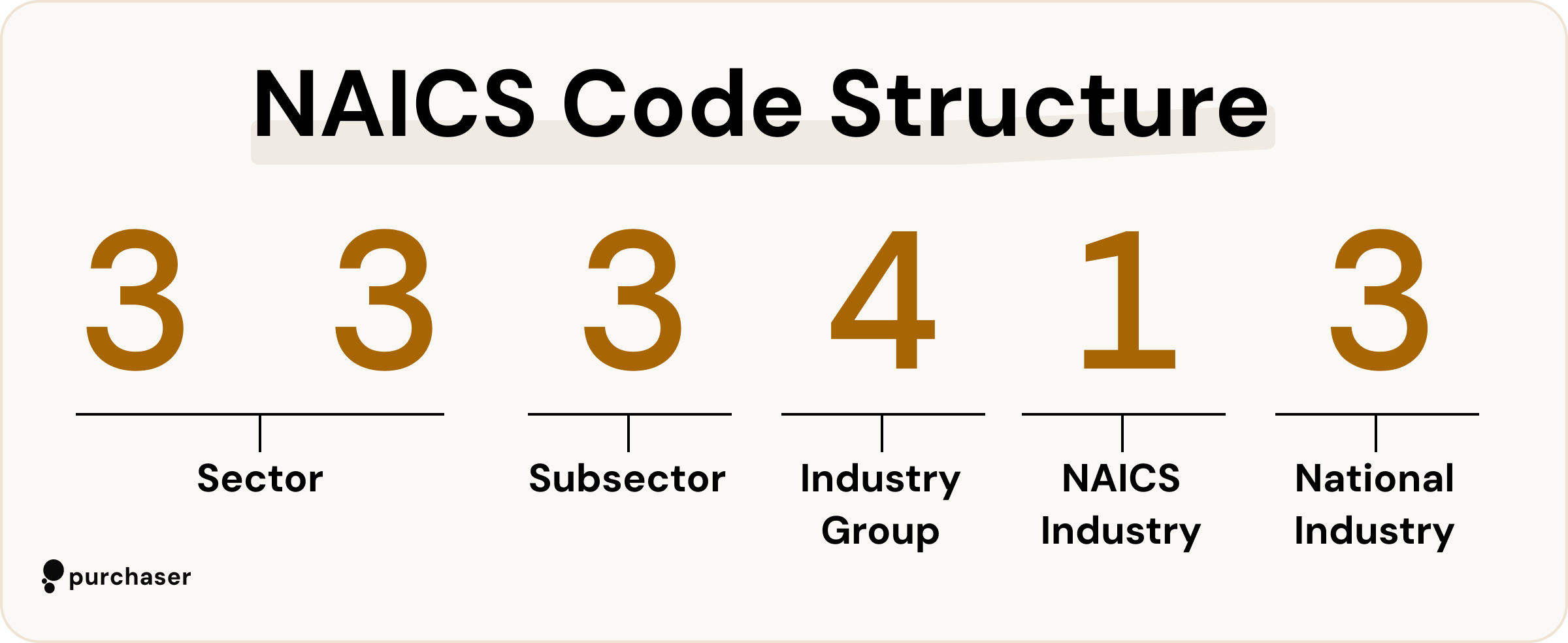 All NAICS codes are either five or six digits long and contain four or five segments. Each segment is part of an overall hierarchy which progressively narrows the classification of the company.